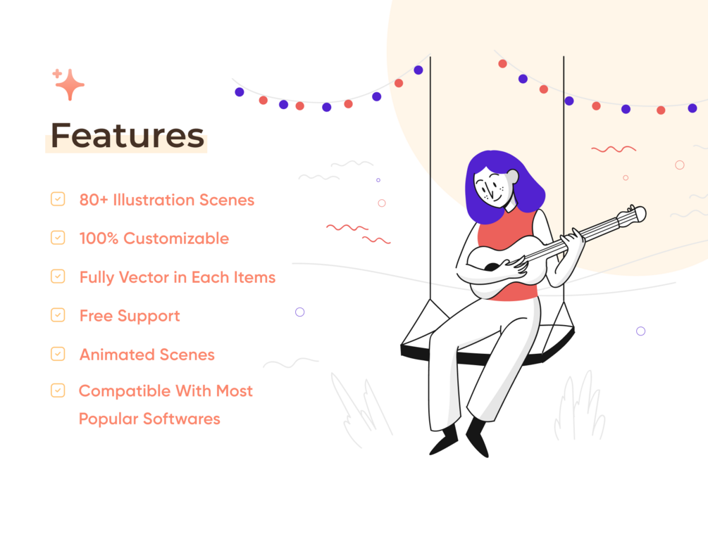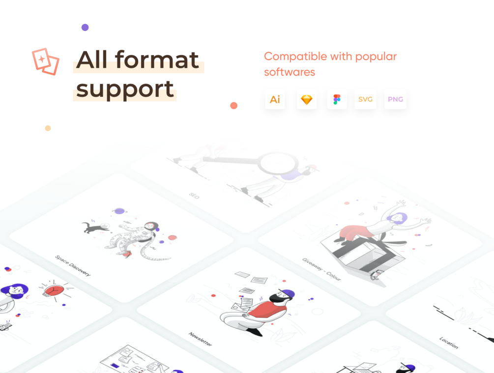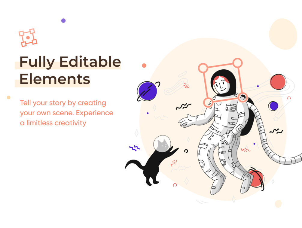 Packed with 80+ uniques illustrations to give any website a clean and professional look. Create awesome landing pages, projects, newsletters, and presentations. The possibilities are endless!